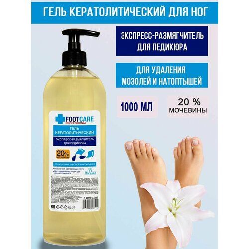 Floresan Гель кератолитический экспресс-размягчитель для педикюра "Жидкое лезвие" 1000 мл. Кератолитический гель - относится к новому поколению безопасных размягчителей, осуществляющих экспресс-подготовку стоп к педикюру, удалению мозолей и натоптышей. Также применяется для профилактики образования кожных наростов и с целью поддержания эстетики внешнего видя пяточек и стоп. В составе средства содержится 20% мочевины, которая размягчает роговой слой эпидермиса и способствует его безболезненному отслоению.