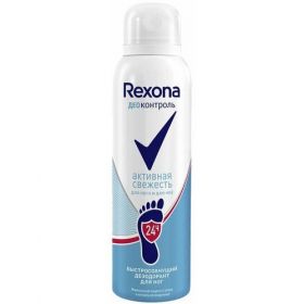 Дезодорант для ног Активная свежесть от Rexona Деоконтроль обеспечивает моментальную защиту от запаха пота до 24 часов даже при интенсивных нагрузках и занятиях спортом. Благодаря уникальному* составу он снижает потоотделение, сохраняя водный баланс кожи, и препятствует размножению бактерий, вызывающих неприятный запах. Он универсален для мужчин и женщин. Подходит для стоп, а также подмышек и ладоней. Эффективен для любой спортивной обуви и не оставляет следов как на ней, так и на носках. Быстро впитывается, не раздражает и не сушит кожу.