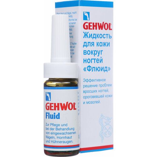 Жидкость Флюид (Gehwol Fluid ) содержит ингредиенты из тимьяна, ромашки и гвоздики, которые смягчают и дезинфицируют кожу. Жидкость «Флюид» возвращает ногтям и коже вокруг них ухоженный вид и эластичность. Назначение: средство для ухода за жесткой, загрубевшей кожей вокруг ногтей, обработки и лечения вросших ногтей, мозолей.