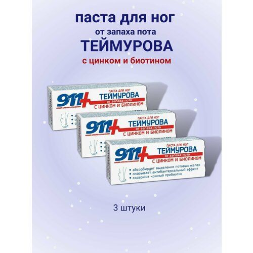 НАЙТИ ВЫГОДНЕЕ - Паста для ног 911 Теймурова, антибактериальная, от запаха пота, 50мл 3шт