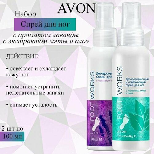 НАЙТИ ВЫГОДНЕЕ - AVON/Эйвон Набор спреев для ног Works (Воркс) с экстрактом мяты и алоэ и с ароматом лаванды, 2 по 100мл
