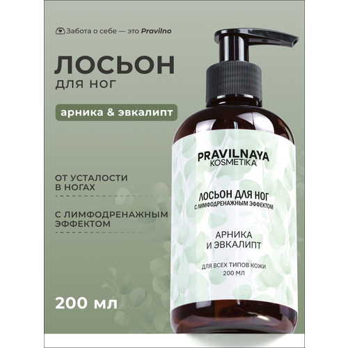 НАЙТИ ВЫГОДНЕЕ - Лосьон для ног с лимфодренажным эффектом Pravilnaya Kosmetika от усталости и отеков, Арника и эвкалипт, 200 мл