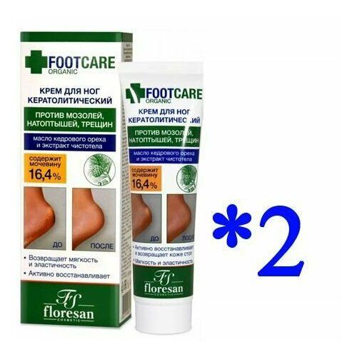 НАЙТИ ВЫГОДНЕЕ - Floresan ORGANIC FOOT CARE Крем для ног Кератолитический против трещин и натоптышей, 100 мл - 2 штуки