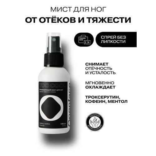 Too Cool — охлаждающий мист для ног, который поможет снять чувство усталости и тяжести в конце дня. Ментол отвечает за мгновенное освежающее действие, избавляет от чувства тяжести и усталости. Троксерутин укрепляет капилляры и улучшает микроциркуляцию — это помогает снять отёчность. Противоотёчное действие дополняют кофеин и экстракт конского каштана.