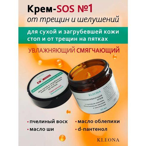 Нежность пяток без постоянного педикюра и долгих процедур с пилками. Восстанавливающий крем подойдет для очень сухой и загрубевшей кожи стоп. Средство поможет от трещин, окажет на пяточки заживляющий и смягчающий эффект. Этот крем увлажняет, регенерирует и успокаивает кожу стоп и ног. Лечебный натуральный крем помогает от покраснений и раздражений. Увлажняющий крем гель оказывает антибактериальный уход, снимает воспалительные процессы, снимает зуд и раздражение, предотвращает обострение, заживляет и смягчает кожу - все это для гладких ступней. С этим кремом вы получите мягкие, напитанные пятки и эластичную кожу стоп без натоптышей и трещин благодаря органическим компонентам. Луковое и облепиховое масла эффективно увлажнят от сухости, восстановят ее гладкость и эластичность, ускорят заживление трещин и ранок в области стоп. Масло алтайское облепиховое - источник витаминов и микроэлементов для быстрого восстановления и регенерации кожи. D-пантенол - обладает противовоспалительным и успокаивающим действием, смягчает, способствует быстрой регенерации кожи. При регулярном применении крем окажет питательный и регенерирующий эффект. Подходит для ухода за диабетической стопой. Уходовая косметика подойдет как женский, так и мужской вариант заботы о красоте. Средство поможет от частого появления мозолей и в борьбе за идеальные ножки. Крем находится в удобной упаковке с функциональным дозатором, которым приятно пользоваться. Способ применения: нанесите крем достаточным слоем на ночь на проблемные участки кожи ступней. Позвольте ему впитаться в течение 15-20 минут. Крем может окрасить белье, поэтому наденьте на ноги носочки. Утром смойте остатки крема водой с мылом в ванной. Для усиления эффекта после нанесите на стопы увлажняющее средство из этой серии. Вечером повторите все процедуры. Компания Клеона - российский производитель, вся наша продукция проходит испытания и имеет Сертификат, это подтверждает качество, безопасность и натуральность косметики.