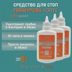 Средство от пота и запаха ног Теймурова эффективно решает проблему неприятного запаха и избыточного потоотделения. Теймурова средство обеспечивает двойную защиту ваших ног, работая как на коже стоп, так и в обуви, оказывая длительное действие и комфорт в любых условиях. Присыпка для ног от пота и запаха быстро впитывают влагу, предотвращая появление зуда и раздражения кожи, а также эффективно снижают выделение пота, оказывает антибактериальное и противогрибковое действие, освежает и снимает тяжесть в ногах. Благодаря активным компонентам средство препятствует повторному инфицированию кожи стоп от ношенной обуви в период или после лечения грибковых заболеваний ног и ногтей. Подходит для использования в любой ситуации – от рабочих задач до спортивных активностей. Средство для стоп Теймурова дезодорирует, устраняет запах пота как ног, так и обуви, препятствуя его повторному появлению. Теймурова средство – ваш надежный помощник в борьбе за сухость и свежесть ног на протяжении всего дня.