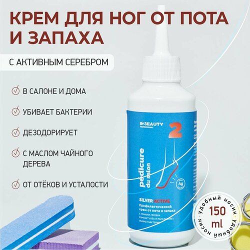 НАЙТИ ВЫГОДНЕЕ - Крем для ног от запаха и пота увлажняющий с серебром и ментолом от отёков и усталости IN2BEAUTY Professional, 150 мл с дозатором