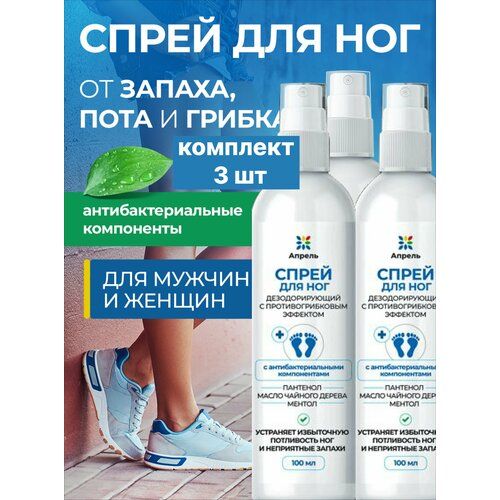 НАЙТИ ВЫГОДНЕЕ - Спрей защитный для ног Апрель, с антибактериальным действием, 100 мл, 3 шт