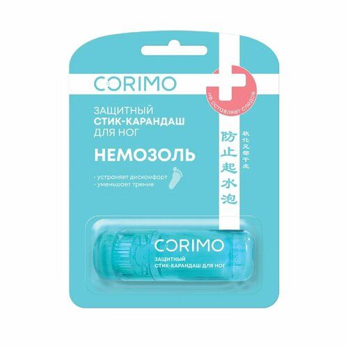 Карандаш от мозолей немозоль CORIMO — это современное удобное средство, имеет компактный размер, его можно взять с собой. Карандаш-стик поместиться даже в маленькой женской сумочке. Стик от мозолей выручит в любой ситуации: неудобная или новая обувь, обувь на каблуках или длительное ношение обуви. Карандаш «немозоль» предотвратит мозоли на своде стопы, между пальцами ног и на пальцах натоптыши на пятках и ступнях. Используйте при необходимости повторно в течение дня. Средство не требует смывания.
