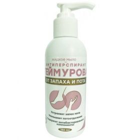 Артикул: 0668-632. Материал: См. на упаковке, Объем: 150 мл., Вес: 175 гр., Область применения: Для ног, Вид: Антиперспирант, Размер упаковки: 5 x 15 x 5 см., Температурное ограничение: Нет, Вес, г/Объём, мл: 150, Тип: Жидкое, Вид мыла: Антибактериальное, Форма выпуска: Крем, Цвет: Бежевый, Аромат: Без аромата. Описание: жидкое мыло-антиперспирант Теймурова – новое эффективное средство для контроля потоотделения и снижения запаха пота, которое подходит всем взрослым. Секрет эффективности жидкого мыла-антиперспиранта теймурова ? в уникальной комбинации достижений науки и силы природняых компонентов. Активные ингредиенты в составе уменьшают потоотделение, а натуральные эфирные масла подавляют развитие бактерий, вызывающих запах пота. Масло мяты перечной освежает, тонизирует и дезодорирует кожу. Отлично подобранная пропорция компонентов мыла-антиперспиранта позволяет использовать его в качестве ежедняевного профилактического средства в условиях повышенного потоотделения: в спортзале, бане, бассейне и при активном отдыхе. Эффективный контроль потоотделения 24 часа в сутки нанесите небольшое количество мыла-антиперспиранта на влажную кожу зон с повышенным потоотделением (стопы, ладони, подмышки), вспеньте, смойте теплой водой. Для достижения стабильного эффекта рекомендуется применять ежедняевно утром и вечером, возможно использование по мере необходимости в течение дняя.Меры предосторожности: не применять лицам, имеющим индивидуальную непереносимость ингредиентов, входящих в состав. Не использовать для детей в возрасте до 3 лет. Не использовать на поврежденной или раздраженной коже. Избегать попадания в глаза и на слизистые оболочки, при попадании необходимо промыть водой.Тип: жидкое.Вид мыла: антибактериальное.Товар 18+: Нет.