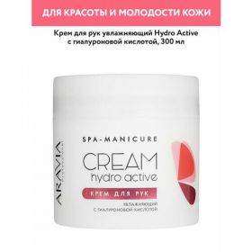 ARAVIA представляет увлажняющий крем для рук Hydro active с гиалуроновой кислотой. Этот продукт предназначен для интенсивного увлажнения кожи рук и обладает эффектом защиты от увядания.