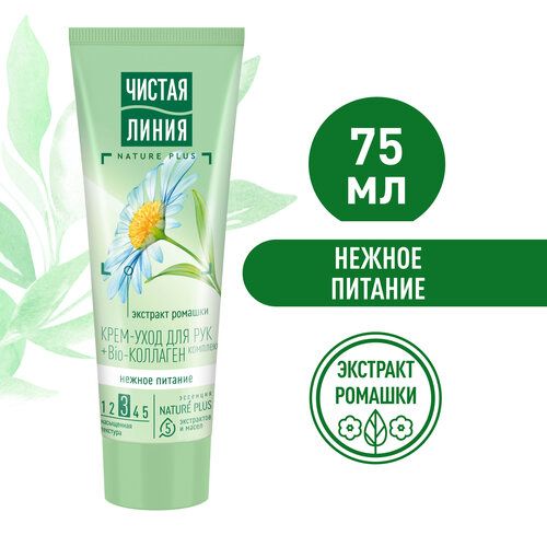 НАЙТИ ВЫГОДНЕЕ - Крем для рук Чистая Линия Нежное питание Bio-коллаген с экстрактом ромашки, мгновенно впитывается 75 мл