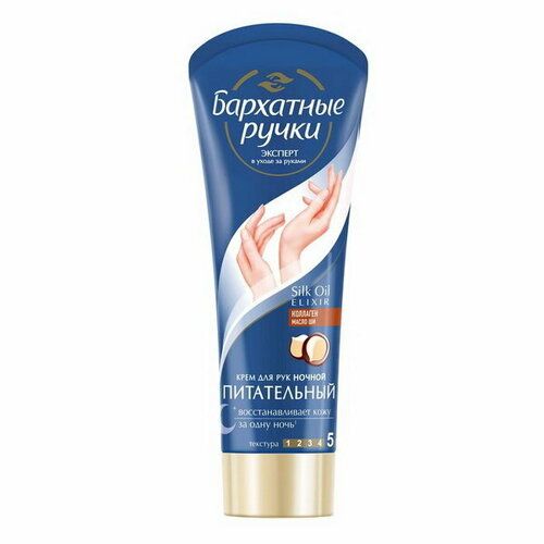 Артикул: 0695-227. Размеры: 14.5 x 3 x 4 см, Вес: 86 гр, Размер упаковки: 4 x 3 x 15 см, Вид: Крем, Вес, г/Объём, мл: 80. Руки самая открытая и доступная постороннему взгляду часть тела. Их ухоженное состояние ценится не меньше идеального макияжа или правильно подобранной причёски. Сохранить кожу нежной и привлекательной поможет крем для рук "Бархатные ручки" "Ночной". Его специальная формула способствует восстановлению клеток кожи, интенсивно увлажняет и смягчает руки. Не содержит искусственных красителей.