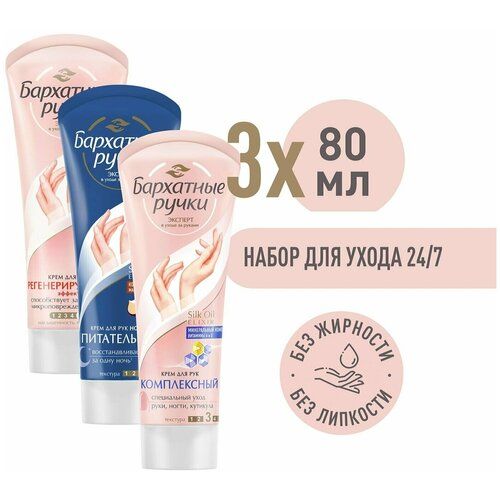 НАЙТИ ВЫГОДНЕЕ - Бархатные Ручки / Набор кремов для рук Бархатные Ручки Комплексный 80мл + Ночной питательный 80мл + Регенерирующий 80мл 3 шт