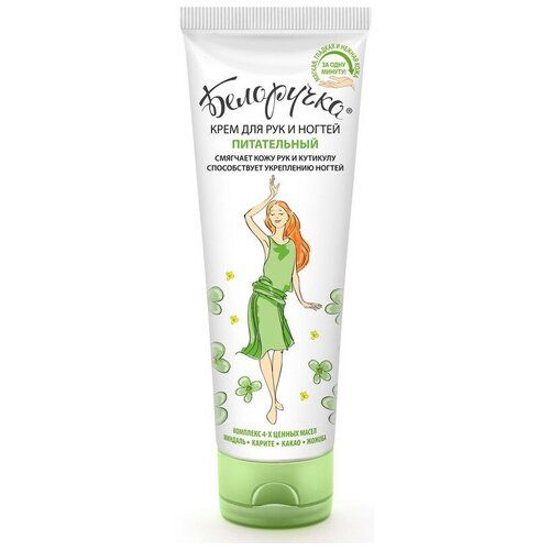 Крем для рук Белоручка Питательный 75 мл. Для уверенности в красоте кожи рук и ногтей используйте крем питательный с комплексом из четырех ценных масел для ежедневного ухода в любое время года. Мягкая, гладкая и нежная кожа за 1 минуту легкими массажными движениями нанести крем на чистую сухую кожу рук до полного впитывания. Состав: Aqua, Sorbitol, Cetearyl Alcohol (and) Potassium Cetyl Phosphate, Сaprylic/Capric Triglyceride, Dimethicone, Glyceryl Stearate, Cetearyl Alcohol, PPG-15 Stearyl Ether, Helianthus Annuus (Sunflower) Seed Oil, Paraffinum Liquidum, Petrolatum, Myristyl Lactate, PEG-7 Glyceryl Cocoate, Carbomer, Parfum, PEG-40 Hydrogenated Castor Oil, Butyrospermum Parkii (Shea Butter), Simmondsia Chinensis (Jojoba) Seed Oil, Theobroma Cacao (Cocoa) Seed Butter, Prunus Amygdalus Dulsis(Sweet Almond) Seed Oil, Tocopheryl Acetate, Brassica Campestris (Rapeseed) Seed Oil (and) BHT (and) BHA (and) Propyl Gallate (and) Propylene Glycol (and) Monoglycerides (and) Citric Acid, Disodium EDTA, Methylchloroisothiazolinone (and) Methylisothiazolinone, Citric Acid, Sodium Hydroxide.