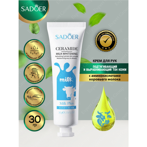 НАЙТИ ВЫГОДНЕЕ - Подтягивающий и выравнивающий тон кожи крем для рук Sadoer с аминокислотами коровьего молока 30 гр.