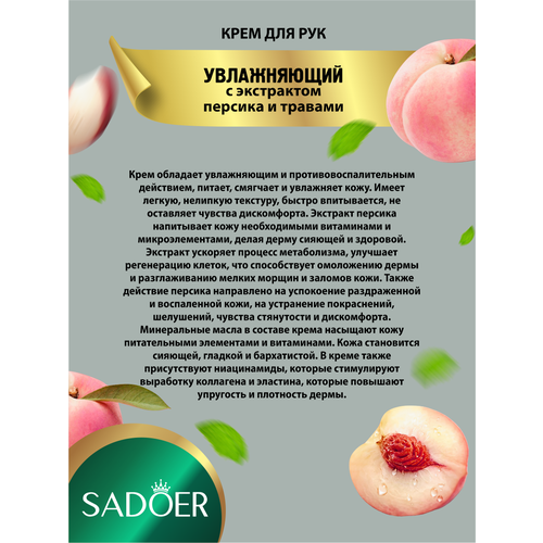 НАЙТИ ВЫГОДНЕЕ - Увлажняющий крем для рук Sadoer с экстрактом персика и травами 30 гр. х 3 шт.