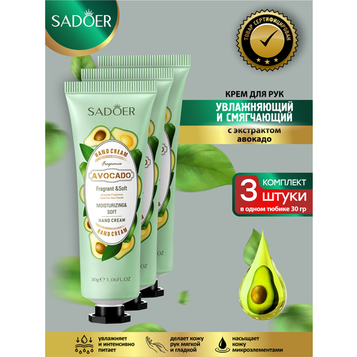 НАЙТИ ВЫГОДНЕЕ - Увлажняющий и смягчающий крем для рук Sadoer с экстрактом авокадо 30 гр. х 3 шт.