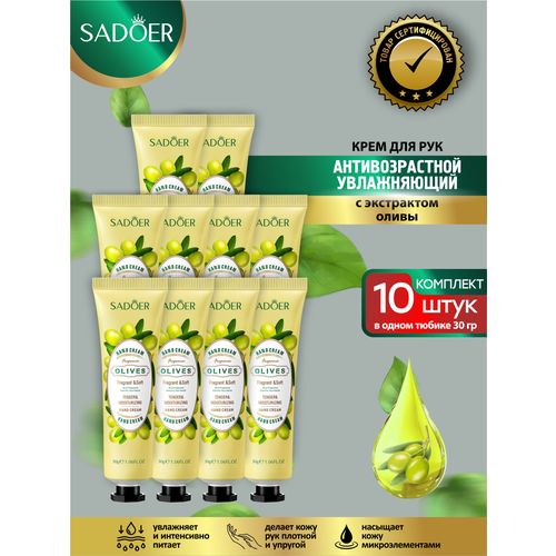 НАЙТИ ВЫГОДНЕЕ - Антивозрастной увлажняющий крем для рук Sadoer с экстрактом оливы 30 гр. х 10 шт.