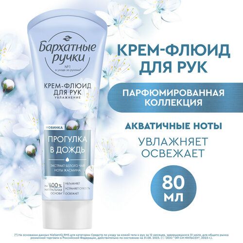 Наслаждайтесь ухоженной и увлажненной кожей рук с новинкой от эксперта №1 в уходе за руками – Бархатные ручки ° – парфюмированным крем-флюидом Увлажнение Прогулка в дождь.