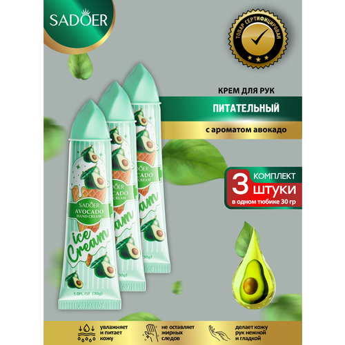 НАЙТИ ВЫГОДНЕЕ - Питательный крем для рук Sadoer Ice Cream с ароматом авокадо 30 гр. х 3 шт.