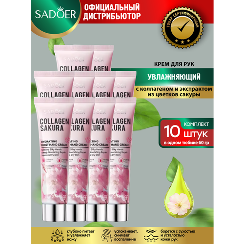НАЙТИ ВЫГОДНЕЕ - Увлажняющий крем для рук Sadoer с коллагеном и экстрактом из цветков сакуры 60 гр. х 10 шт.