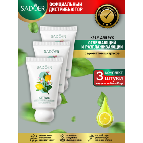 НАЙТИ ВЫГОДНЕЕ - Освежающий и разглаживающий крем для рук Sadoer с ароматом цитрусов 40 гр. х 3 шт.