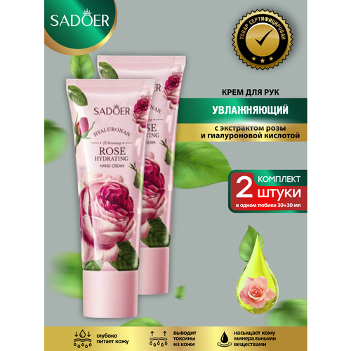 НАЙТИ ВЫГОДНЕЕ - Крем для рук Sadoer с экстрактом розы и гиалуроновой кислотой 30 мл. + 30 мл. х 2 упак.
