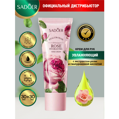 НАЙТИ ВЫГОДНЕЕ - Увлажняющий крем для рук Sadoer с экстрактом розы и гиалуроновой кислотой 30 мл. + 30 мл.