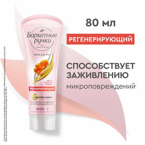 НАЙТИ ВЫГОДНЕЕ - Крем для рук Бархатные Ручки Регенерирующий, с маслом облепихи и аргинином, 80 мл (5 шт)