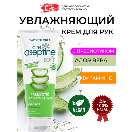 Турецкая косметика предлагает веганский увлажняющий крем для рук и тела с соком Алоэ вера и пребиотиками в удобной для поездок и путешествий в том числе в ручной клади самолета для косметички тубе объемом 75 мл. Этот высококачественный восстанавливающий веган крем подойдет как для профессионального использования, так и для повседневного ухода за кожей рук и тела, потому что он содержит витаминные комплексы для питания и увлажнения кожи, произведен в ТУрции, крем халяль.