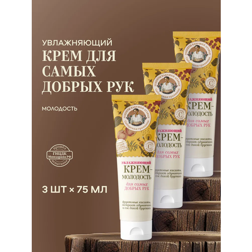 НАЙТИ ВЫГОДНЕЕ - Крем Рецепты бабушки Агафьи Сибирская травница для самых добрых рук увлажняющий Молодость, 3 шт х 75 мл