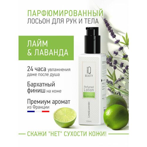 Парфюмированный лосьон для рук и тела Лайм и Лаванда от IQ BEAUTY - премиум парфюм - уход с активными ингредиентами в формуле, который глубоко увлажняет и питает кожу 24 часа, оставляя роскошный свежий аромат лайма и лаванды.