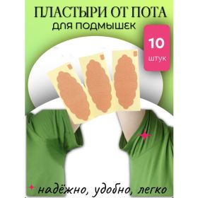 Наклейки от пота для подмышечной области изготовлены из высококачественной хлопчатобумажной ткани и силикона. В коробке 10 вкладышей. Нанеся непосредственно к вашей коже, они могут впитывать и задерживать пот, защищая вас от чрезмерного потоотделения и сохраняя ощущение прохлады и сухость в течение всего дня. Идеально подходят для любых стрессовых ситуаций: собеседований при приеме на работу, публичных выступлений, встреч, деловых переговоров, свиданий, вечеринок и др. Пластыри от пота предотвращают попадание пота на одежду, что в случае с деликатными тканями может привести к появлению пятен. Универсальны и подойдут как для мужчин, так и для женщин.