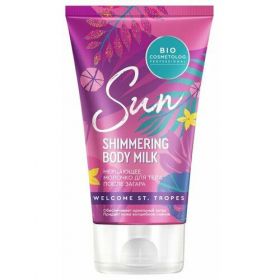 Мерцающее молочко для тела после загара помогает восстановиться после пребывания на солнце и успокоить кожу. Молочко смягчает кожу, поддерживает красивый оттенок загара и придает телу естественное сияние. Пантенол восстанавливает кожу после солнца, снимает покраснения и смягчает. Миндальное масло питает и увлажняет, а кокосовое масло продлевает загар. Эластин ускоряет регенерацию кожи, а гиалуроновая кислота глубоко увлажняет и омолаживает кожу.