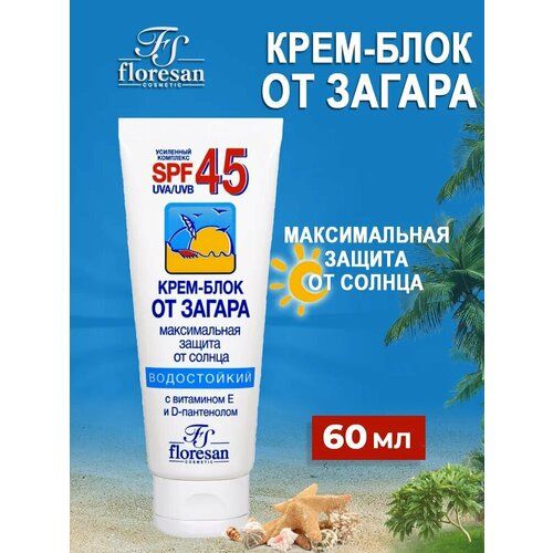 Floresan Водостойкий Крем-блок от загара SPF 45 с витамином Е и D-пантенолом 60мл - это высококачественное средство для защиты кожи от солнца.