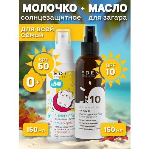 НАЙТИ ВЫГОДНЕЕ - Набор от солнца EDEN Sun Series Молочко для детей 0+ SPF 50 150мл + Масло для загара SPF 10