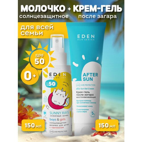 НАЙТИ ВЫГОДНЕЕ - Набор от солнца EDEN Sun Series Крем-гель после загара 150мл + Молочко солнцезащитное детское 0+ SPF 50 150мл