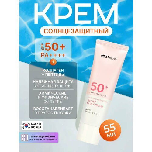 NEXTBEAU Солнцезащитный крем для лица с пептидами коллагеном SPF 50+ / PA++, Корея 55мл. Collagen Solution Relief Sun Cream спф 50. Антивозрастная корейская уходовая косметика 1064391677