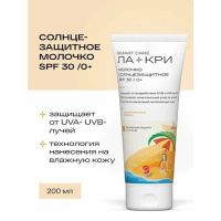 Санскрин водостойкий. Комфортен в использовании, не вызывает ощущения жирности и липкости. Подходит для загара, защищает от вредного воздействия УФ-лучей и фотостарения, в том числе появления пигментных пятен.