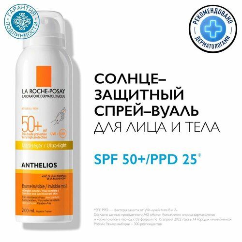 НАЙТИ ВЫГОДНЕЕ - La Roche-Posay Солнцезащитный спрей-вуаль для лица и тела SPF 50+/PPD 25 Anthelios, 200 мл