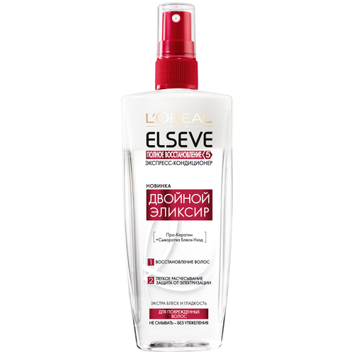 НАЙТИ ВЫГОДНЕЕ - L'Oreal Paris несмываемый экспресс-кондиционер Elseve Полное восстановление 5 Двойной эликсир для поврежденных волос, 200 мл