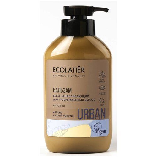 НАЙТИ ВЫГОДНЕЕ - ECOLATIER бальзам Urban Restoring Аргана & Белый Жасмин восстанавливающий для повреждённых волос, аргана и жожоба, 400 мл