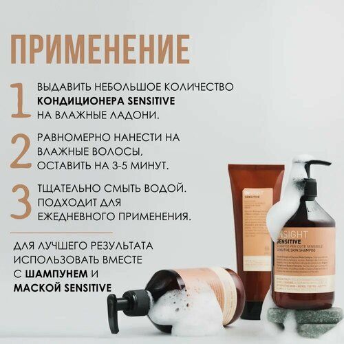 Бессульфатный кондиционер INSIGHT Sensitive Skin идеален для ухода за чувствительной кожей головы. Он смягчает и успокаивает кожу, избавляет от зуда и раздражения, разглаживает волосы и придает им блеск.