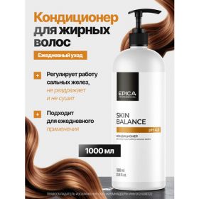 Кондиционер для ежедневного ухода EPICA Professional Skin Balance регулирует работу сальных желез и поддерживает естественный гидролипидный баланс кожи головы.