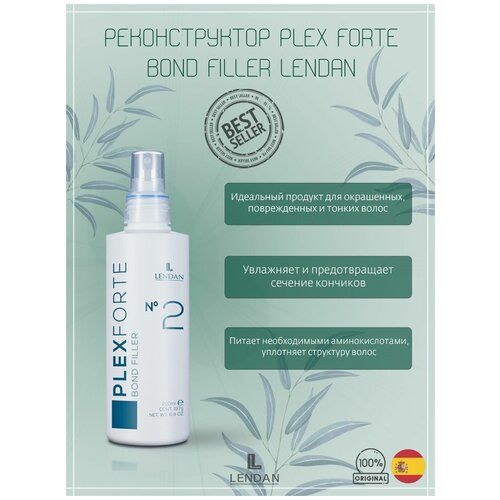 Реконструктор для волос Plexforte №2 Lendan восстанавливает и глубоко питает поврежденные волосы необходимыми аминокислотами, уплотняет структуру волос, придает им ухоженный вид с первого применения. Этот уход заменяет маску, бальзам и кондиционер• глубоко питает волосы• защищает волосы при использовании фена и утюга для укладки• обладает эффектом anti- frizz• обеспечивает защиту цвета• предотвращает сечение кончиков волос• содержит солнцезащитный фильтр• восстанавливает поврежденные волосы• обеспечивает термозащиту• увеличивает объем волосСпособ применения: Нанесите необходимое количество на ладони, растереть и нанести на влажные волосы. Равномерно распределите по всей длине, затем высушите волосы как обычно