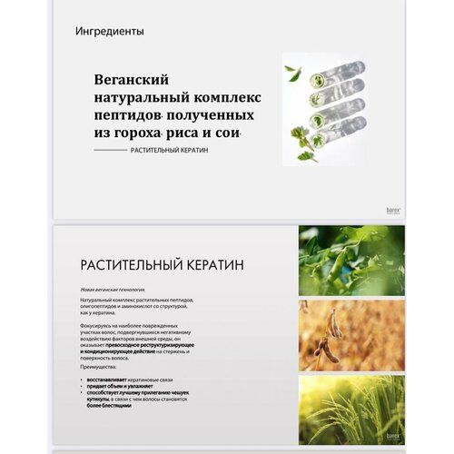 - Восстановление структуры волос: Растительный кератин укрепляет волосы изнутри, улучшая их эластичность.