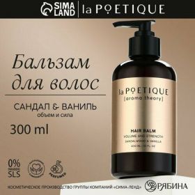 Объем бальзама - 300 мл, что позволяет долго пользоваться им и наслаждаться здоровыми и красивыми волосами каждый день. Попробуйте бальзам для волос "Объем и сила" с ароматом сандала и ванили от POETIQUE и почувствуйте разницу с первого применения