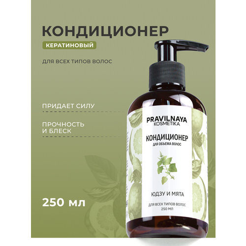 НАЙТИ ВЫГОДНЕЕ - Кератиновый бальзам-кондиционер для укрепления и восстановления волос Pravilnaya Kosmetika, Юдзу & Мята, 250 мл.