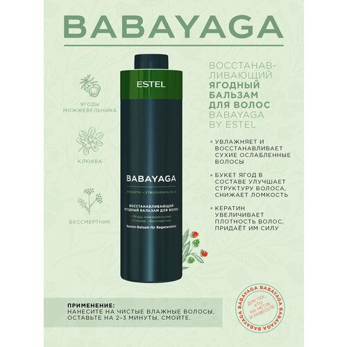 ESTEL бальзам Babayaga – это восстанавливающий ягодный ополаскиватель для сухих и ослабленных волос. Объем составляет 1000 мл, что делает его экономичным и удобным в использовании.
